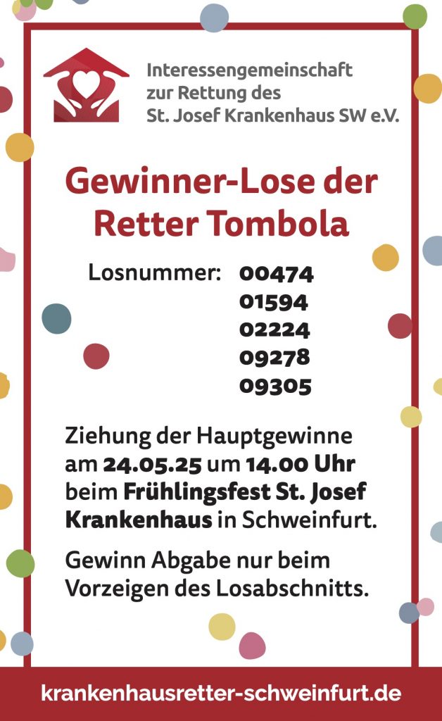 Wir glauben, dass der Verlust von 4 Mio. Euro im St. Josef-Geschäftsjahr 2023 durch die neuen Gesellschafter ab 01.01.2025 wie folgt ausgeglichen wird: Stadt Schweinfurt mit einem 50 % Anteil, der Landkreis mit 25 %, der Bezirk Unterfranken mit 10 %, Landkreis Hassberge mit 5 %, die Interessengemeinschaft zur Rettung des St. Josef Krankenhauses Schweinfurt mit 5 %, das Land Bayern und der Bund mit 3% und Investoren mit 2%.